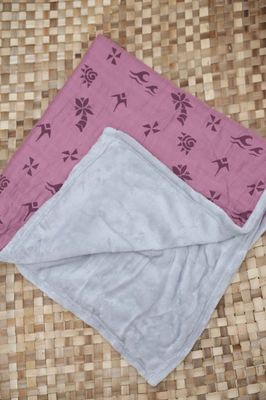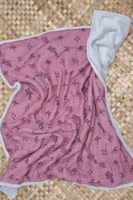 - Baby blanket made out of soft plush and muslin cotton with hand-printed design
