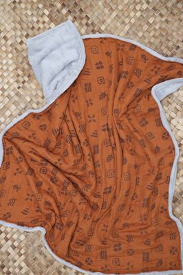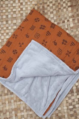 - Baby blanket made out of soft plush and muslin cotton with hand-printed design